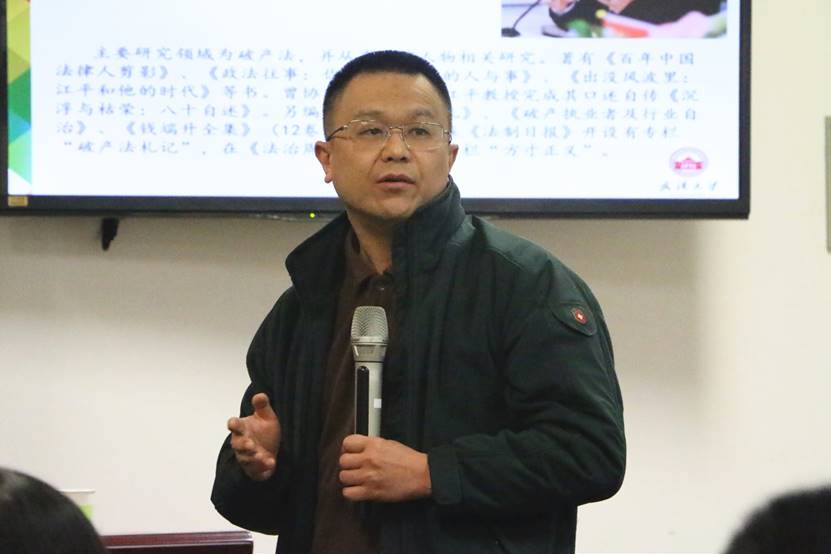 本期青年私法学术坊的主题为“当破产法遇见宪法”,主讲人为中国政法大学破产法与企业重组研究中心研究员、《中国政法大学学报》副编审陈夏红老师,主持人为武汉大学法学院张善斌教授,与谈人为武汉大学法学院秦前红教授、冉克平教授和武亦文副教授,罗昆教授等众多师生以及一些校外法律实务工作者积极参与了本次活动。