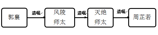 郭襄寻访杨过不得后创立了峨嵋派,此后毕生寻访屠龙刀不得,并将倚天屠龙的秘密和寻访宝刀的使命传给了峨眉派第二代掌门人风陵师太。风陵师太一如郭襄,毕生寻觅宝刀不得。我们可以这样理解:风陵师太依据郭襄的遗嘱继受取得了屠龙刀的所有权。此后秘密和使命被传给灭绝师太,灭绝师太又将秘密和使命传给了周芷若。同理可知,根据我国现行民法相关规则,合法的屠龙刀所有权人应当是周芷若。