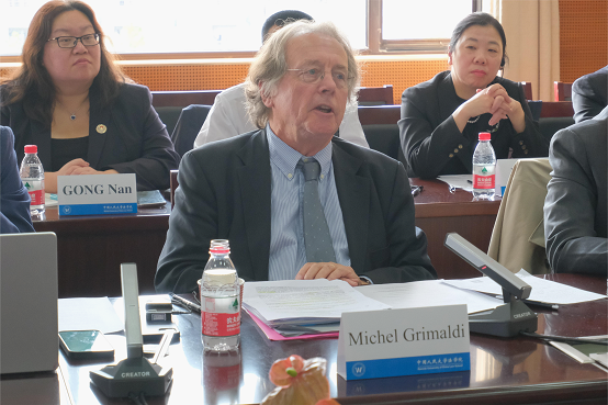 全国人大常委会法制工作委员会民法室李恩正处长首先对不远万里来到北京参加本次关于中国民法典研讨会的法国朋友们表示欢迎。李恩正处长表示本次国际性交流让大家有更多的视角来观察和理解中国民法典。中国民法典的成功编纂,是中国全面推进依法治国、推进国家治理体系和治理能力现代化的重要举措,在中国法治建设进程中具有重大的里程碑意义,也为人类法治文明的发展进步贡献了中国智慧和中国方案。随后,李恩正处长介绍了中国民法典的编纂历程,揭示中国民法典编纂的不易,并指出中国民法典是通过对中国已有的民事法律制度规范体系进行系统整合、编订纂修基础上形成的。其次,法国民法典与中国民法典在语言风格、务实性等方面有诸多共同之处。中国在民法典编纂过程中,充分立足中国的国情和实际,认真总结本国的实践经验,体现了鲜明的中国特色和实践特色。最后,法国民法典的很多制度设计和做法对中国民法典的编纂有重要的启示意义。例如,法国民法典关于情势变更制度、选择之债、多数人之债等所作的规定,对中国设计民法典中的相关制度很有启示。此外,法国民法典已经成功实施200多年,在处理好保持法典稳定与应对时代发展之间的关系方面,积累了丰富的经验,也很值得深入学习研究。