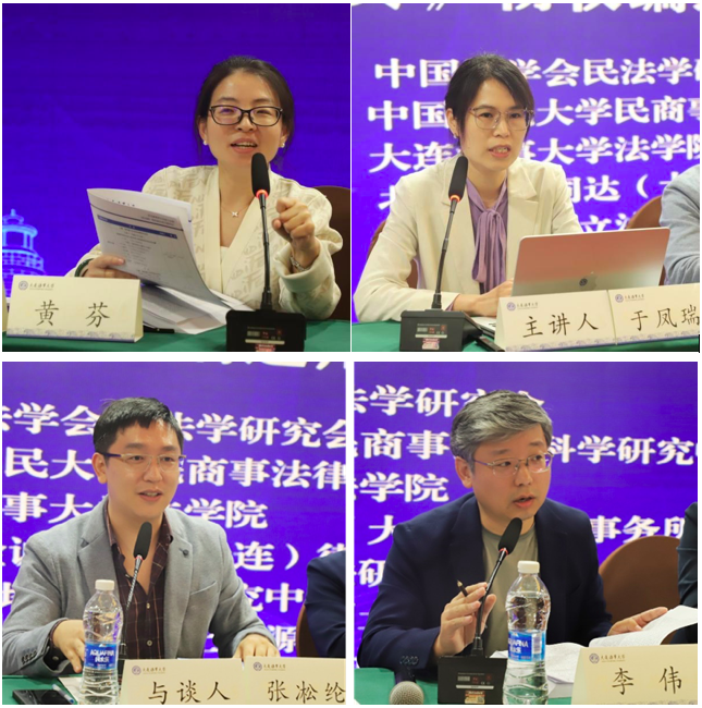 第三主题为“物权编用益物权制度的适用”,由大连海事大学法学院黄芬教授主持,广东外语外贸大学法学院于凤瑞副教授为主讲人,主讲题目为“论建设用地使用权分层设立‘不得损害’规则”。广东外语外贸大学法学院张凇纶副教授、辽宁师范大学法学院李伟教授、大连海洋大学法学院王黎黎副教授、上海海事大学畅冰蕾法学院讲师、吉林大学法学院李雨佳讲师、辽宁大学法学院朱海荣讲师作为与谈人分别与于凤瑞副教授交流了个人观点。最后,由大连海事大学法学院黄芬教授对第三主题做出总结。