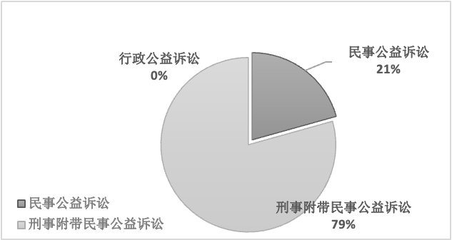 从柱状图可以看出,三类案件中刑事附带民事公益诉讼占比最高,远远超过其他两类案件;行政公益诉讼次之,但是2020年后民事公益诉讼数量赶超行政公益诉讼,但数量从整体上来看并不突出。