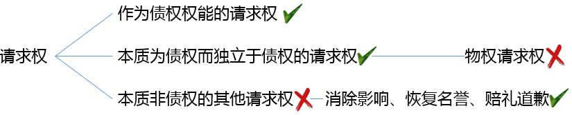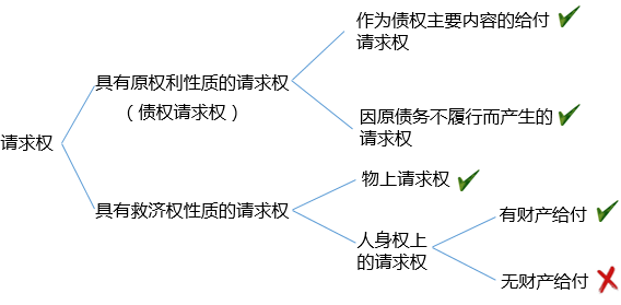 以这一类标准进行诉讼时效适用范围的讨论,一般先用相当篇幅论述诉讼时效的适用限于请求权。例如,程啸副教授从比较法的角度分析,由于各自法律传统不同,大陆法系国家诉讼时效制度适用于请求权,英美法系国家将诉讼时效的适用范围笼统规定为诉权。由于我国民法基本上继受传统的大陆法系民法,因此我国诉讼时效的适用范围应认定为请求权。[14]尹田教授认为诉讼时效期间并非针对处于正常状态的实体性权利抑或程序性权利、资格性权利而设定,诉讼时效是权利受到不法侵害后,行使法律所赋予的请求权的法定期间。因此,诉讼时效只能适用于请求权,无需特别加以论证。[15]与尹田教授从诉讼时效成立的基础分析相对,张驰教授从诉讼时效的效力入手,认为无论采诉权消灭说(包括起诉权与胜诉权)、实体权利消灭说还是抗辩权发生说,诉讼时效作用的对象始终是请求权,所以诉讼时效的适用范围是请求权。[16]除对于请求权结构的具体认识有所不同外,总体而言,两种论述殊途同归。对于相关论证方法能否得出这一结论,并非与本文论题直接相关,在此不作展开。