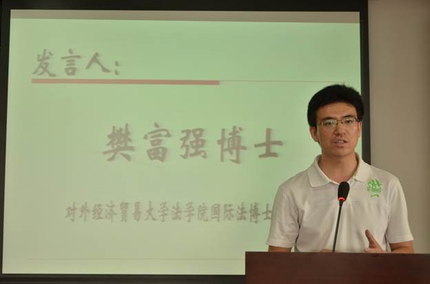 以上就是我的一些感想。下面我们就开始本环节的发言,首先是王斐民教授的发言,他今天没有来,由他的合作者,对外经贸大学的博士生樊富强代表两人进行发言。下面有请樊富强博士。王斐民(北方工业大学文法学院副教授);代表:樊富强(对外经贸大学国际法学博士研究生):