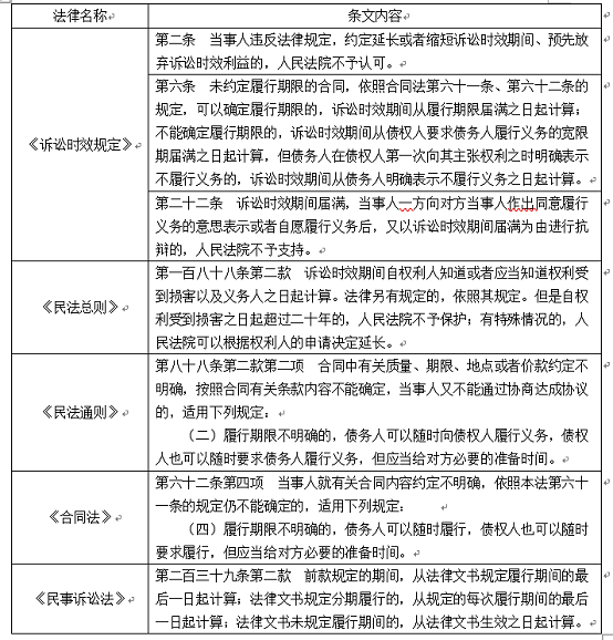 根据《民法通则》第88条和《合同法》第62条,“履行期限不明确的,债务人可以随时履行,债权人也可以随时要求履行,但应当给对方必要的准备时间。”对于随时履行原则本身,没有争议,但关于该原则的诉讼时效意义,“从权利人主张权利时起算时效”和“从权利成立时起算时效”两种方案的主张者,在理解和贯彻上却出现了原则性分歧。