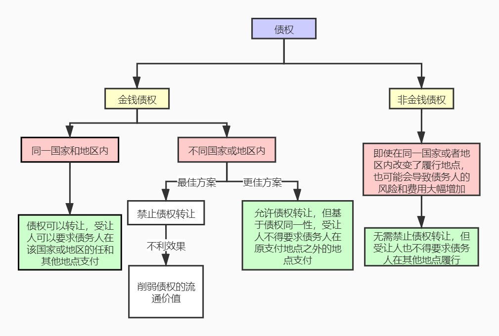债权转让对债务人利益的影响,首先表现在债权人的变动可能会导致债务人履行的地点变化和费用增加。对此,要区分金钱债权和非金钱债权分别讨论。