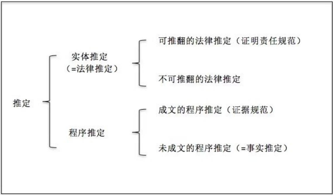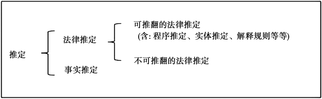 在对“推定”的理解上,程序概念观从起点上限缩了推定的含义,推定被视作司法过程中的事实推断方法,由此,法律推定也完全立足于盖然性的原理,推定总是可以在诉讼中被推翻,不存在不可推翻的法律推定。实体概念观并未对推定的范围作出限定,形成了实体推定与程序推定二分的体系结构。而事实推定仅为程序推定中不具有成文规则形式的组成部分。